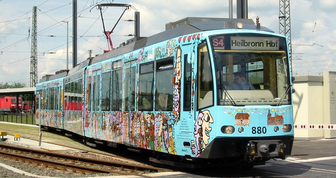 Der 2002 neu in Dienst gestellte Zweisystemer mit Betriebsnummer 880 wurde auf Initiative Heilbronner Kaufleute vom mittlerweile verstorbenen New Yorker Popart-Künstler James Rizzi gestaltet und fuhr seitdem bis zu seiner Außerdienststellung 2022 als rollendes Kunstwerk namens „Rizzibahn” auf dem Streckennetz der Zweisystemlinien im Großraum Karlsruhe.