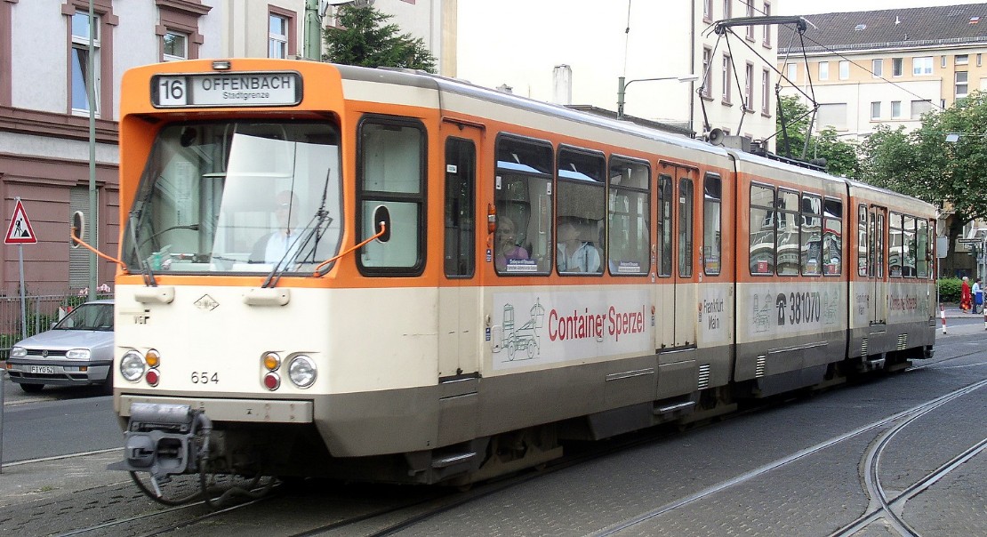 Ab 1972 wurde von DUEWAG der achtachsige Straßenbahnwagen vom Typ P nach Frankfurt(M) geliefert. Später wurden sukzessive alle für den Stadtbahnbetrieb mit Klapptrittstufen umgebaut und als Typ Pt bezeichnet. Ab 1997 wurden zahlreiche Fahrzeuge ein weiteres mal mit verbreiterten Trittstufen als Typ Ptb umgebaut und waren mit der größeren Wagenbreite nicht mehr freizügig im Streckennetz einsetzbar.