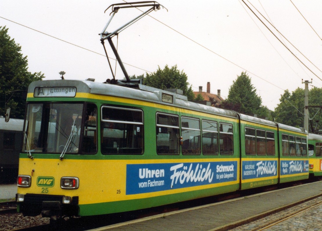 Zur fälligen Erweiterung des mittlerweile zu klein gewordenen Wagenparks der Albtalbahn wurden 1975 vier neue achtachsige Gelenkwagen beschafft. Dem Zeitgeschmack entsprechend bekamen die von der Berliner Waggon-Union gelieferten Fahrzeuge ein neues Design. Sie waren gemischt mit den vorhandenen Gelenkwagen auch im Zugverband einsetzbar und stellten bis zur Ablösung mit den Stadtbahnwagen ab 1981 den Gesamtverkehr auf den Albtallinien. Danach wurden sie auf das Stadtnetz umgesetzt und sind teilweise noch heute dort im Einsatz.