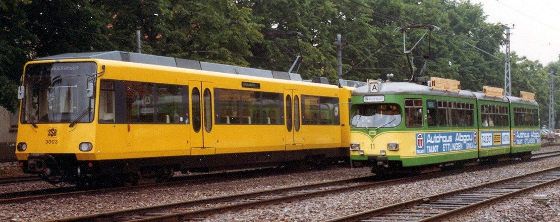 1981 wurden drei Prototypen für die neue Stuttgarter Stadtbahnwagen ausgeliefert. Anfangs waren diese mangels bereits betriebsfähiger Strecken bei der Albtalbahn in Karlsruhe im Testeinsatz.